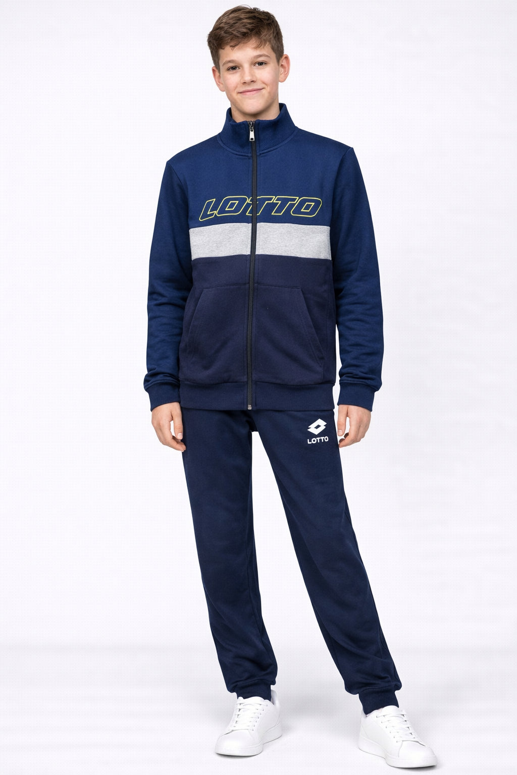 Il completo è composto da felpa con zip frontale e pantalone coordinato, realizzati in tessuto morbido e caldo che garantisce comfort e libertà di movimento. Il design sportivo con logo Lotto dona un look dinamico e moderno, perfetto per l’uso quotidiano.