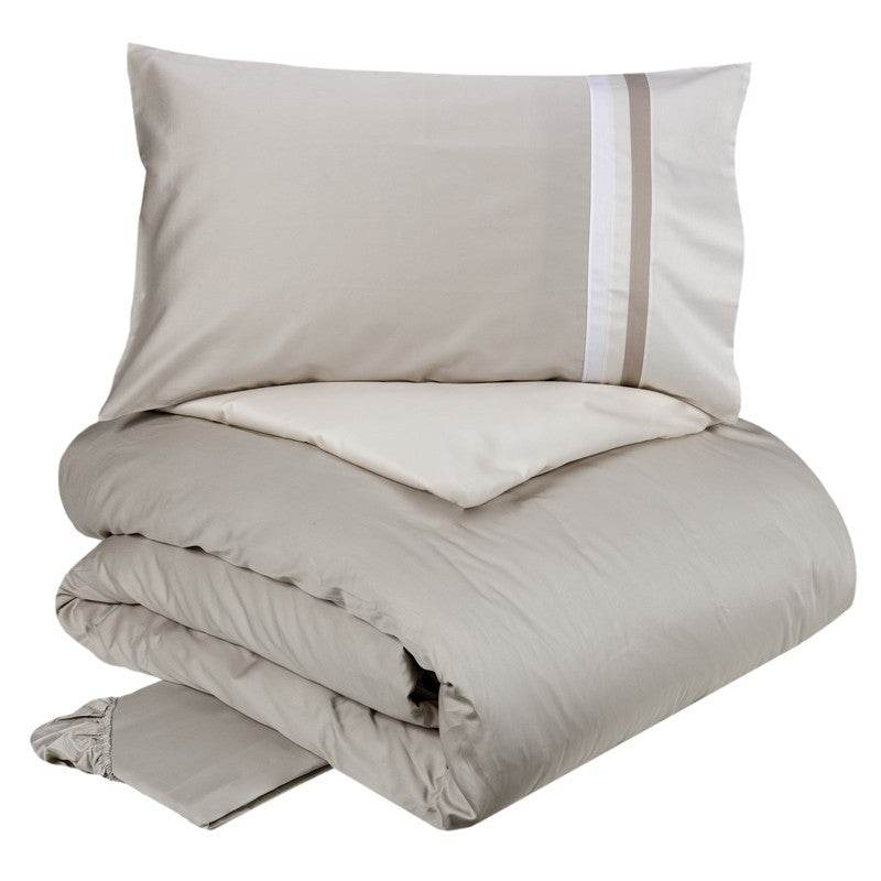 Questo completo, nel raffinato colore tortora cammello, si distingue per la qualità e la cura dei dettagli, ideali per un ambiente elegante e contemporaneo.
