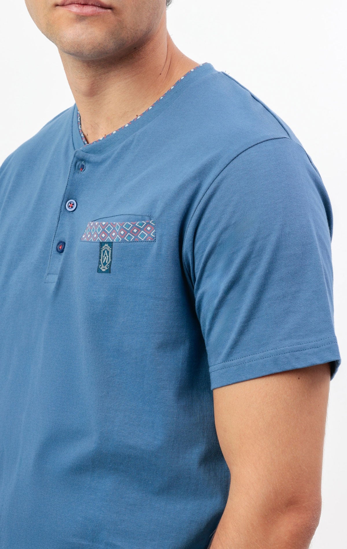 La maglia a maniche corte presenta un elegante colletto button-down, dettaglio distintivo che richiama lo stile casual raffinato, arricchita da un pratico taschino sul petto con logo Admas Classic. I pantaloncini coordinati sono dotati di tasche laterali e vita elasticizzata regolabile, per una vestibilità comoda e personalizzata.