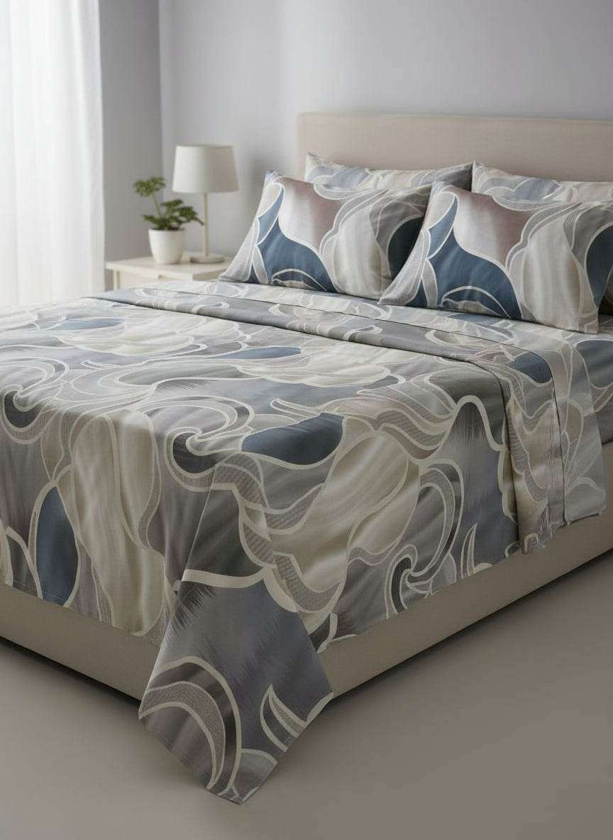 Realizzato in 100% puro cotone, questo completo assicura freschezza, traspirabilità e morbidezza al tatto, garantendo un riposo confortevole in ogni stagione. La fantasia astratta multicolore, caratterizzata da contrasti armoniosi e dinamici, dona al letto un aspetto moderno e ricercato, ideale per ambienti giovani, creativi e pieni di personalità.
