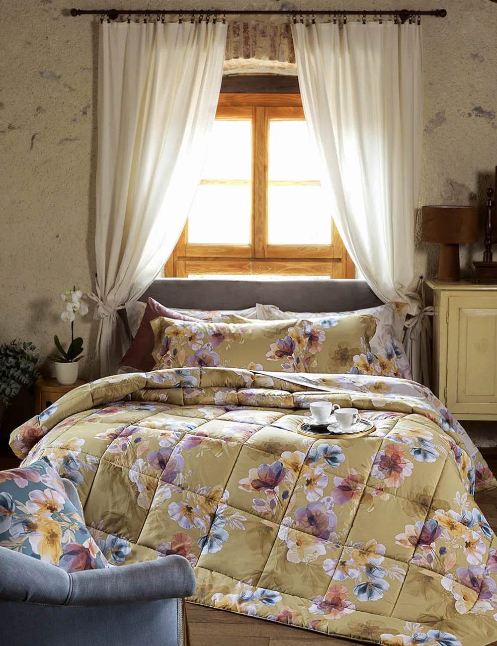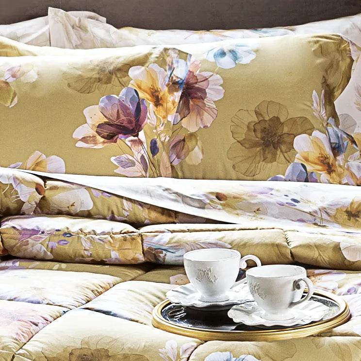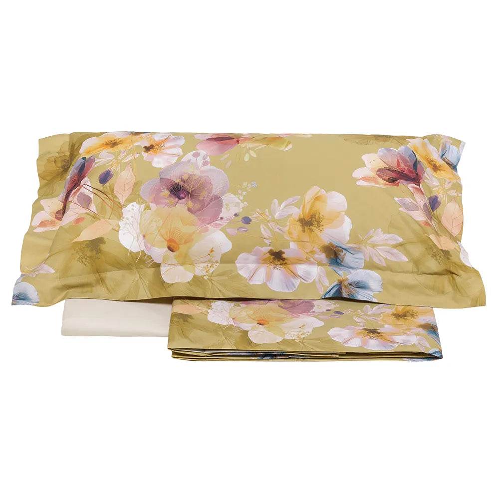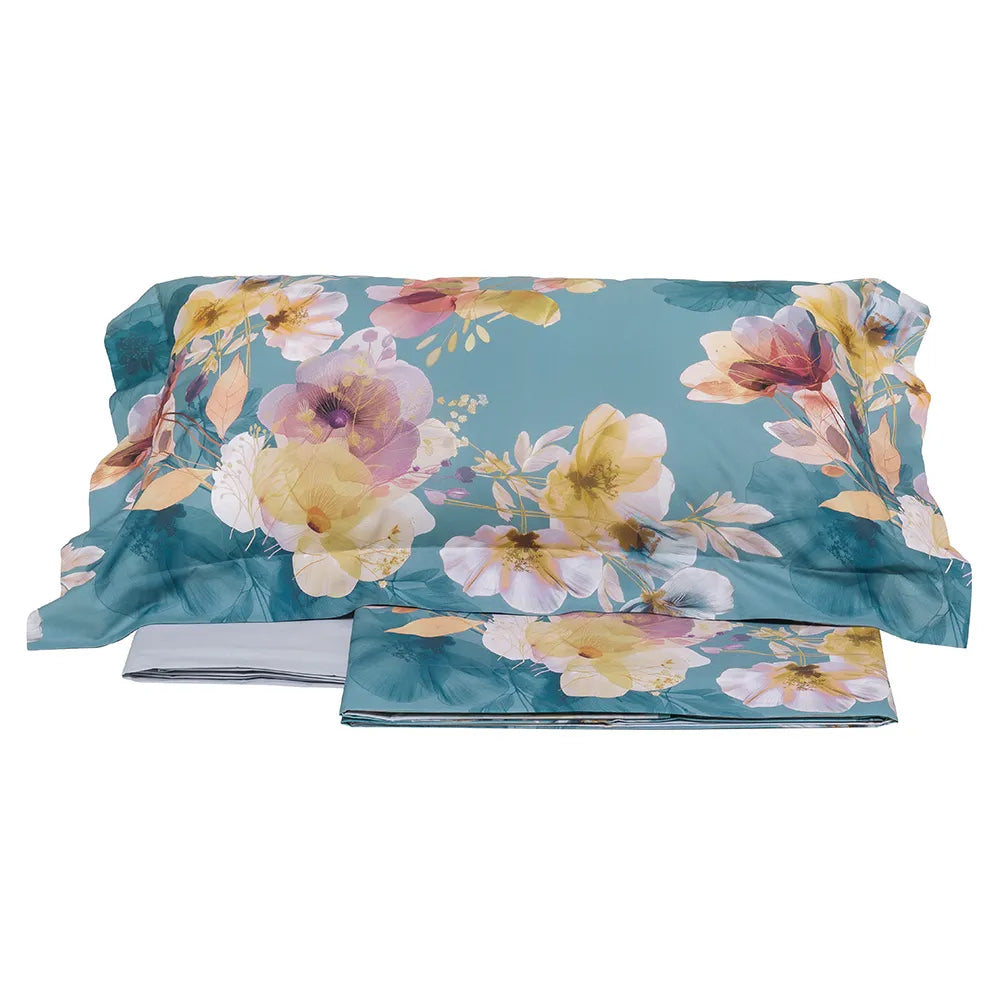 L’ampio lenzuolo sopra è dotato di balza a giorno con risvolto cucito che garantisce continuità del disegno, mentre il lenzuolo sotto con angoli elastici si adatta a materassi fino a 30 cm di altezza. Il tessuto in percalle è soffice, traspirante e delicato sulla pelle, con un aspetto opaco elegante e termoregolatore naturale, ideale per un riposo confortevole tutto l’anno.