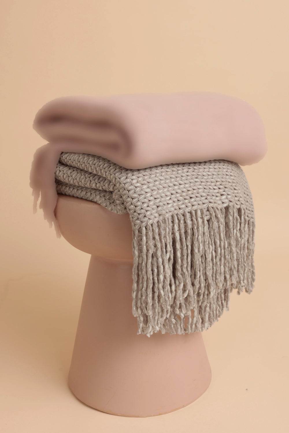 Il design nei toni grigio e rosa dona un tocco elegante e delicato a qualsiasi ambiente, rendendo il plaid un accessorio pratico e decorativo.
