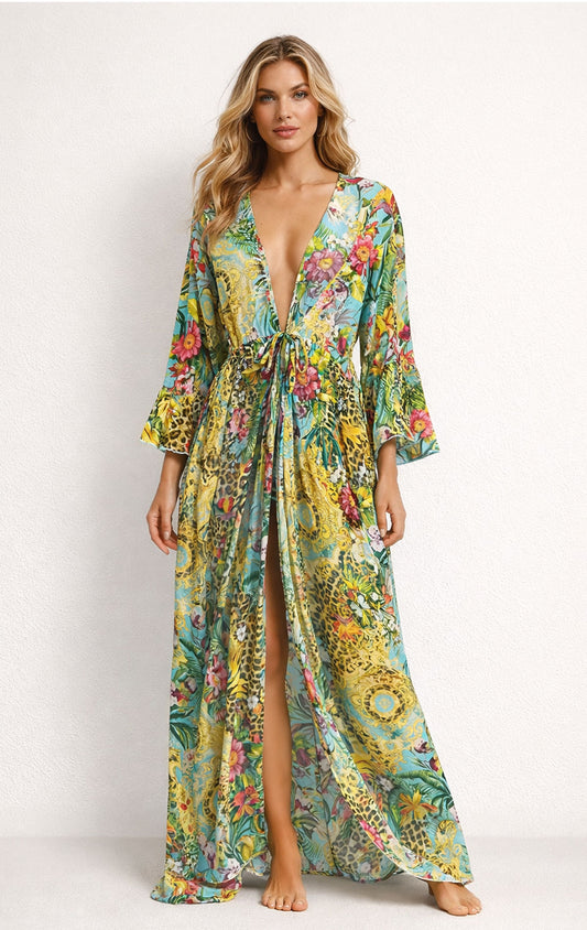 La gonna lunga svasata e fluida garantisce movimento e freschezza, rendendo questo vestito perfetto per look casual chic, vacanze o tempo libero.