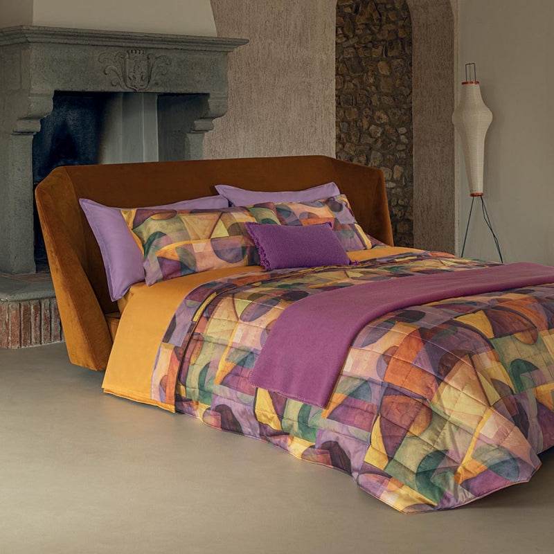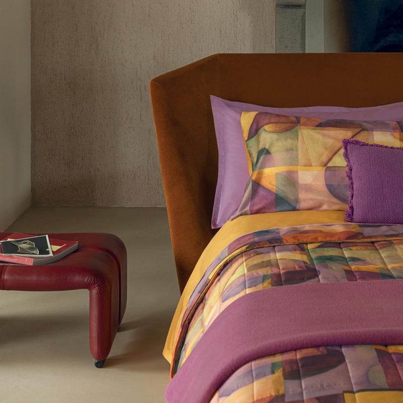 Il completo è realizzato in percalle di puro cotone, morbido, fresco e piacevole al tatto, ideale per accompagnare il riposo con comfort e qualità. La preziosa stampa digitale dona brillantezza ai colori e nitidezza ai dettagli: le federe e l’alta balza del lenzuolo sono decorate con motivi stampati e impreziosite da una raffinata codina a contrasto, mentre il resto del set è proposto in percalle tinta unita, per un equilibrio armonico tra eleganza e sobrietà.