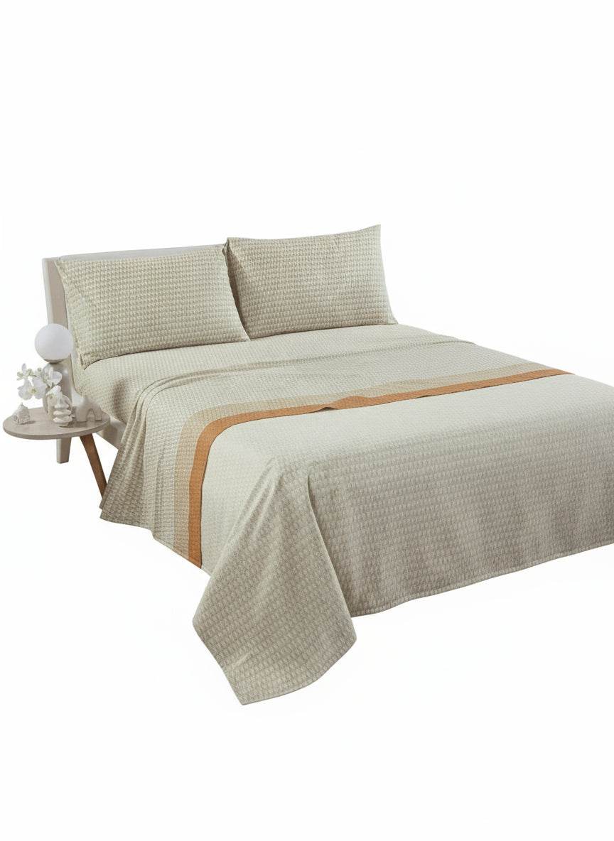 Disponibile nelle misure per letto singolo e matrimoniale, si adatta con precisione al tuo materasso grazie al lenzuolo inferiore con angoli da 25 cm di altezza, assicurando sempre una vestibilità perfetta.