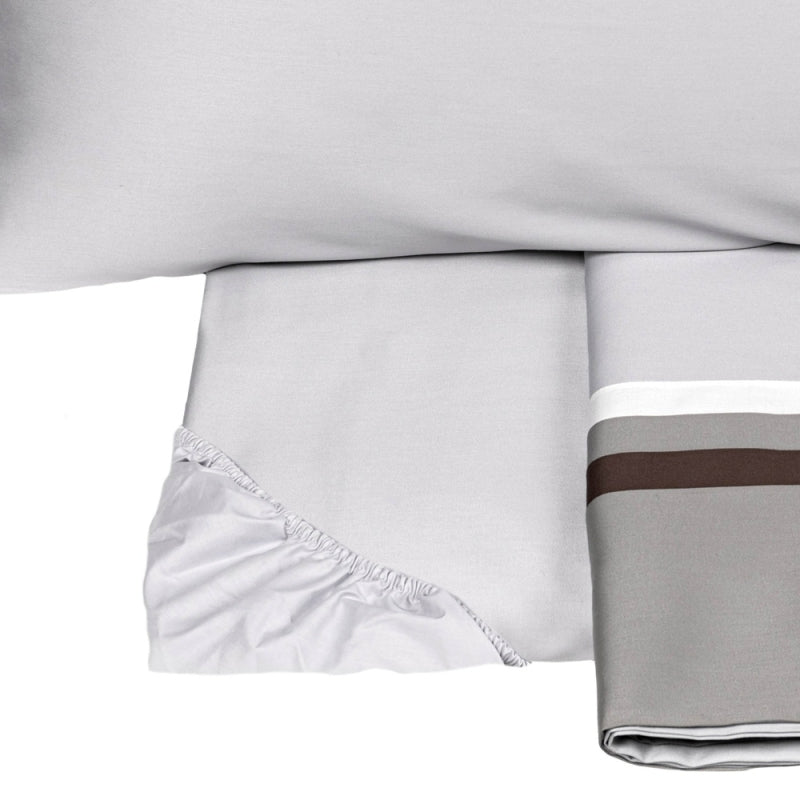Lenzuola matrimoniale in raso di cotone tinta unita con balze a contrasto Fazzini. KUBRIC 60
