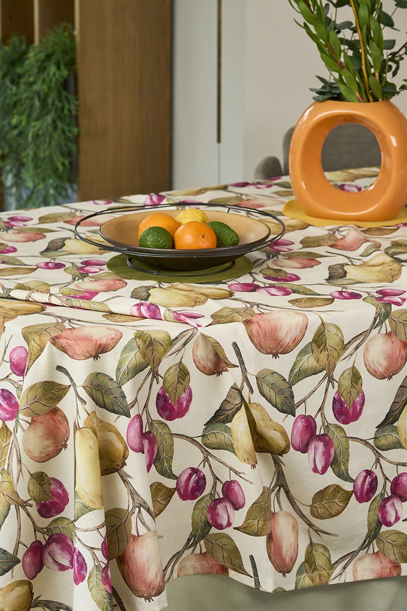 Rinnova la tua tavola con questa elegante tovaglia Neìth, realizzata in 100% panama di cotone con stampa digitale dai colori brillanti e duraturi. La lavorazione con angolo a cappuccio assicura una vestibilità impeccabile, rendendo ogni apparecchiatura ordinata e raffinata.