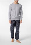 La maglia girocollo tinta unita presenta costine ai polsi e al fondo giacca, assicurando una vestibilità avvolgente e piacevole. I pantaloni con originale stampa a tema macchine donano un tocco di personalità e divertimento, mantenendo al tempo stesso un look curato e moderno.