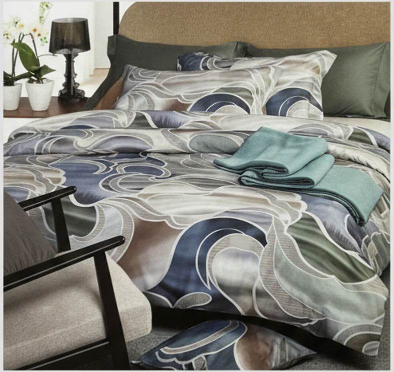 Trapunta matrimoniale realizzata in 100% cotone con imbottitura anallergica. La fantasia astratta presenta colori sfumati a contrasto, per un effetto moderno ed elegante.