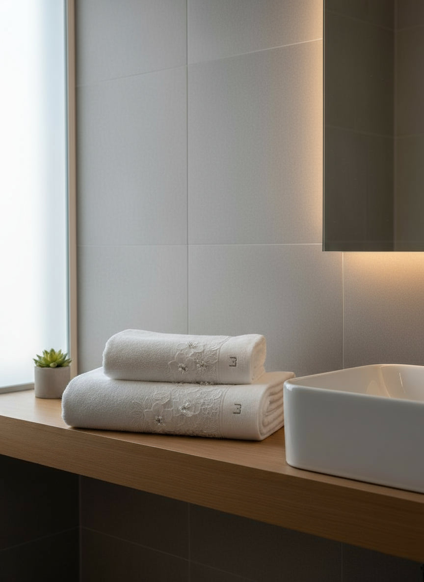 🧺 Composizione set: 1 asciugamano viso + 1 ospite