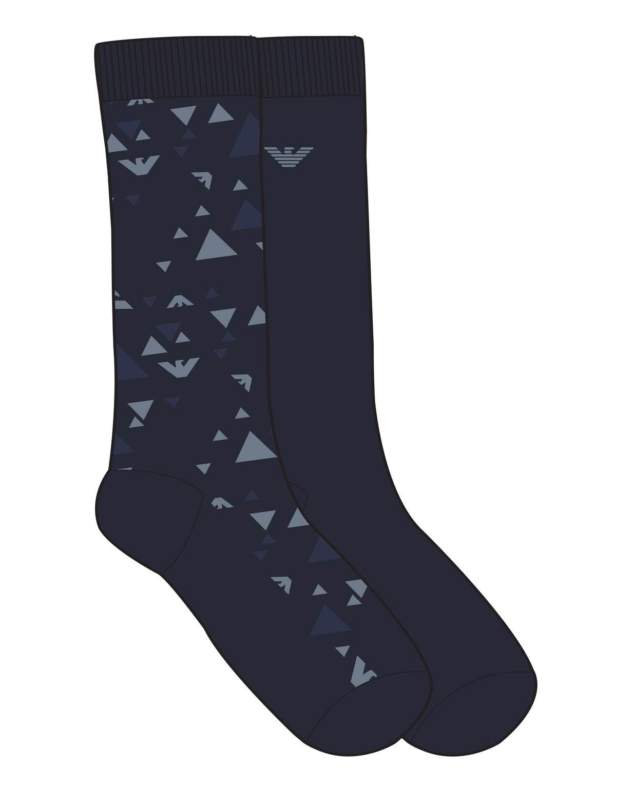 Pack composto da 2 paia di calzini lunghi da uomo realizzati in morbido cotone stretch. Caratterizzati da un’elegante fantasia graphic allover e dal comfort tipico dei capi Emporio Armani, sono disponibili nei colori nero o blu in taglia unica.