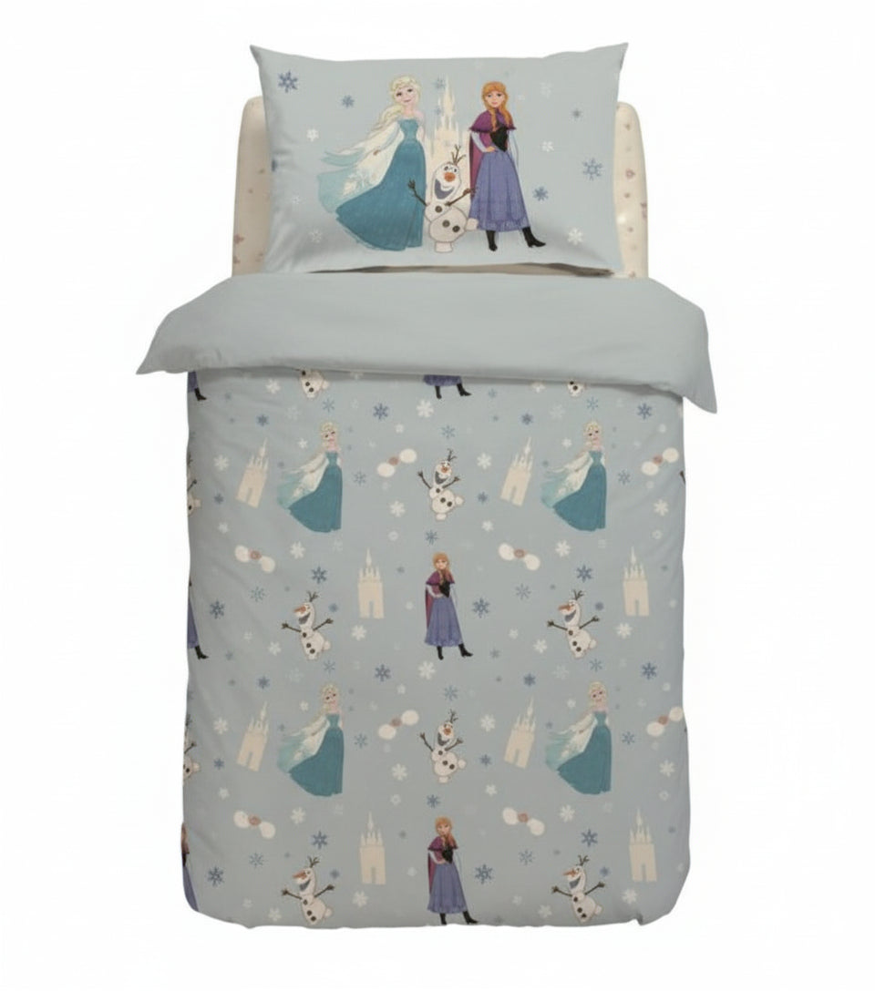 Porta la magia del regno di Arendelle nella cameretta con il copripiumino singolo Frozen Linea Star firmato Caleffi. Lo sfondo azzurro, ispirato alle atmosfere ghiacciate del film, fa risaltare una fantasia a contrasto brillante e ricca di dettagli, dedicata alle amatissime protagoniste Disney.