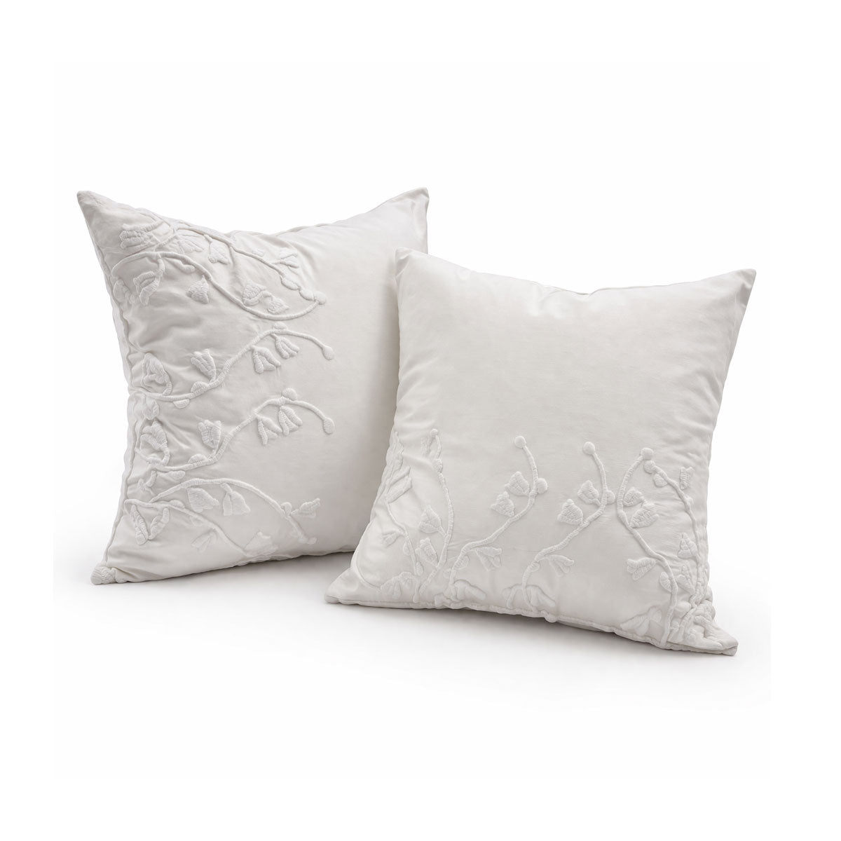 Coppia di cuscini 45x45 decorativi della collezione Mastro Raphael, realizzati in puro cotone e impreziositi da un raffinato ricamo a rilievo tono su tono. Il design elegante con motivo floreale dona profondità e texture, rendendoli ideali per ambienti sofisticati e luminosi. Perfetti per completare letto o divano con uno stile delicato e ricercato.