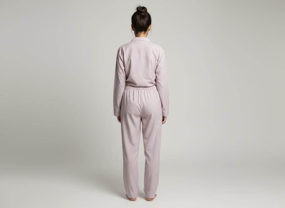 Il modello Afrodite si presenta in una delicata tonalità rosa a fantasia quadrettata, con giacca a maniche lunghe e apertura frontale con bottoni. Il design è completato da un collo a camicia classico, che dona un tocco elegante anche all’abbigliamento da notte.