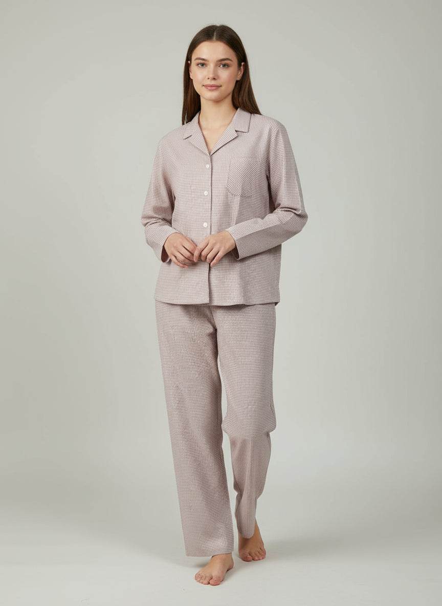 Comodo e caldo pigiama da donna in morbida flanella di cotone, ideale per le stagioni più fredde.