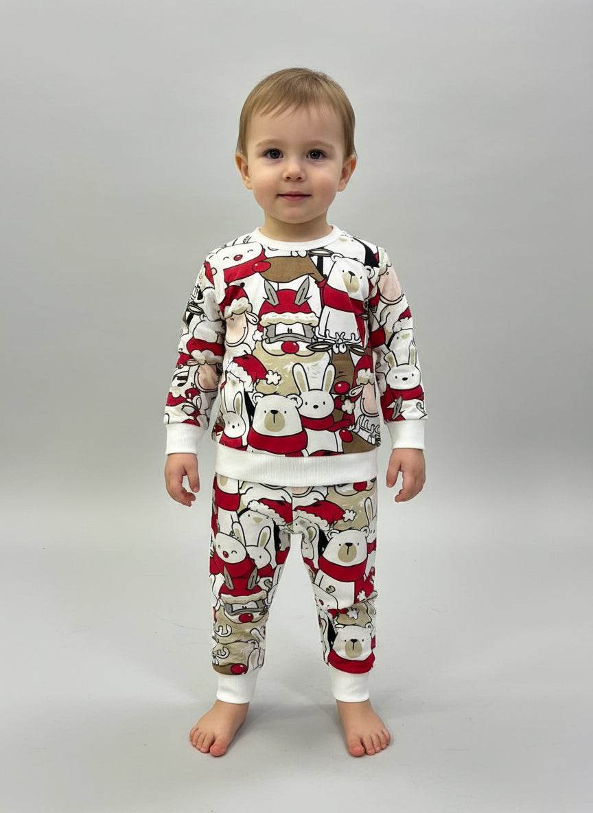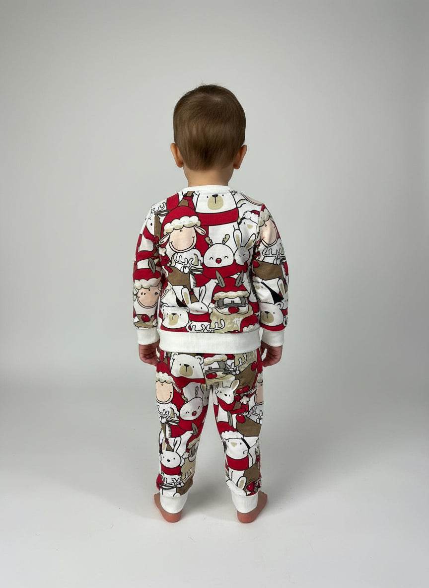 Rendi il riposo del tuo piccolo ancora più festoso con questo pigiama spezzato natalizio a due pezzi. Realizzato in tessuto morbido e confortevole, è dotato di polsini elastici alle estremità per mantenere il caldo e garantire comfort durante la notte. La fantasia è dedicata ai personaggi del Natale, perfetta per celebrare le feste in allegria.