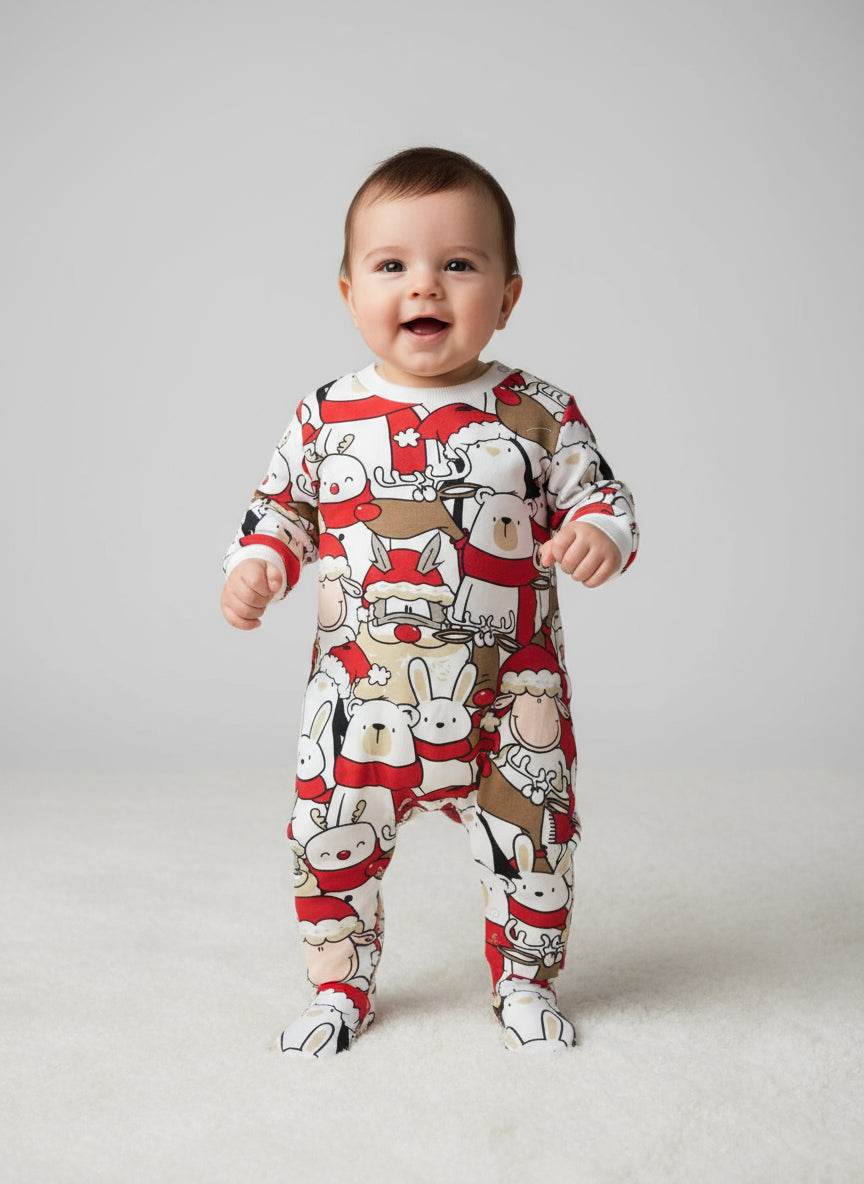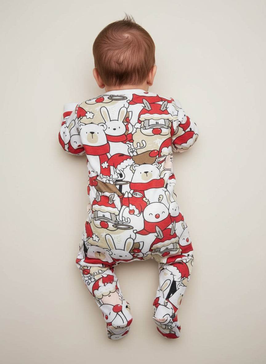 Avvolgi il tuo piccolo nella magia del Natale con questa adorabile tutina intera natalizia. Realizzata in cotone caldo, garantisce comfort e morbidezza durante le fredde giornate invernali. La fantasia, dedicata ai personaggi del Natale, rende questo pigiama perfetto per le festività.