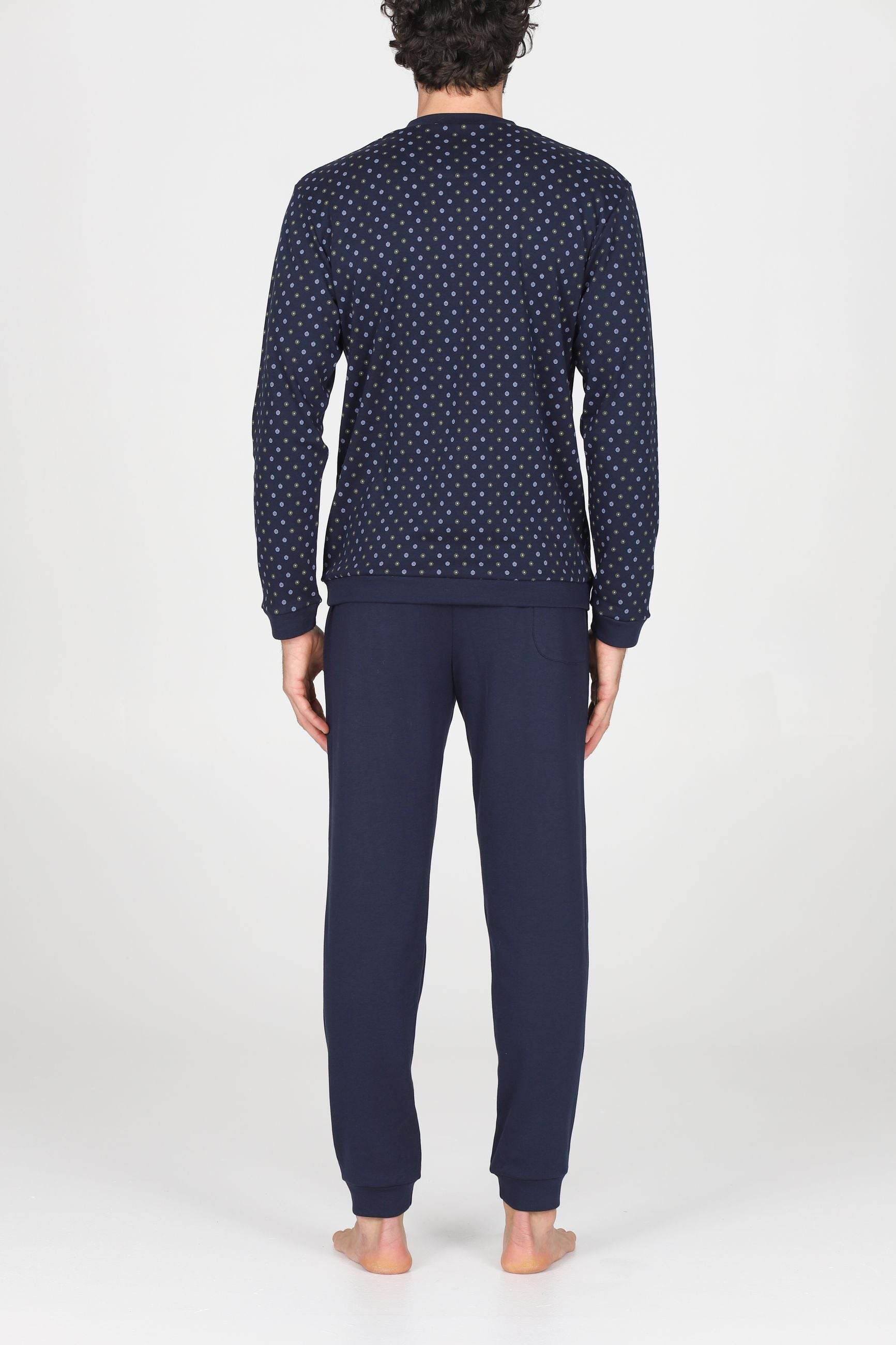 La fantasia cravatta nel colore blu aggiunge un tocco di stile raffinato, rendendo questo pigiama perfetto per le serate e le notti più fredde. Disponibile nelle taglie dalla 48 alla 54, combina funzionalità e design classico, ideale per chi cerca comfort senza rinunciare all’eleganza anche a casa.