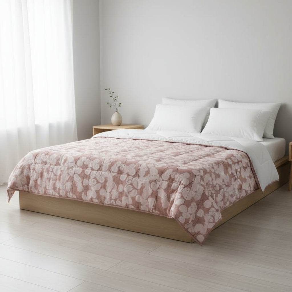 Ogni trapunta è trapuntata a capo e rifinita a mano con cura sartoriale, completa di due angoli sagomati che ne assicurano una perfetta vestibilità sul letto matrimoniale. Con dimensioni generose di 270x270 cm, è proposta in raffinate tonalità come rosa e grigio, versatili e adatte a diversi stili di arredamento.