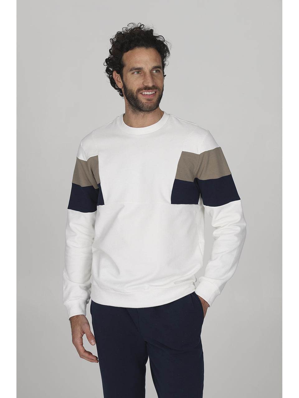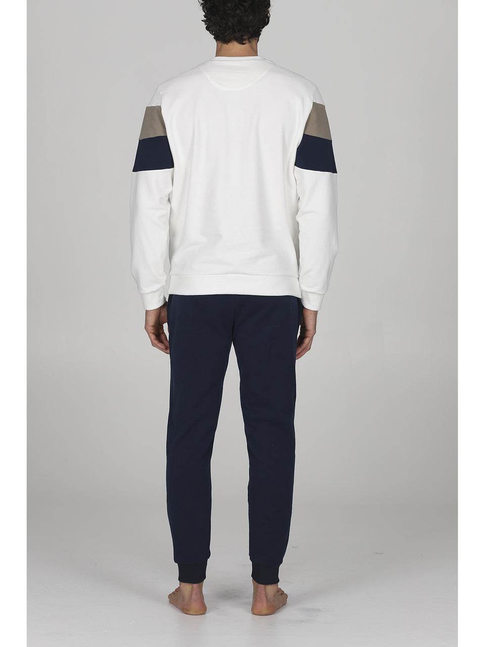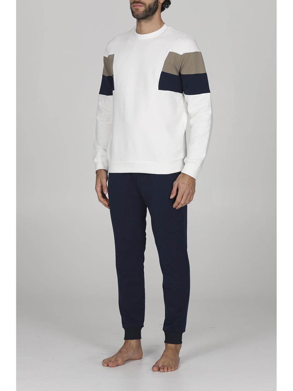 Il design contemporaneo è impreziosito da dettagli color block a contrasto, che spezzano la monotonia e donano al capo un look dinamico e moderno. La maglia girocollo e i pantaloni in tinta unita con polsini creano un insieme armonioso, versatile e curato nei minimi dettagli.